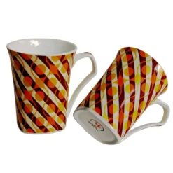 UPC Colored Multi Color Decal Milk Mug/Big Size Cup (300 ml Capacity) Made of Fine Bone China, Light, Translucent Tableware/Kitchenware/Homeware Set of 2 Cups, Mutli Color