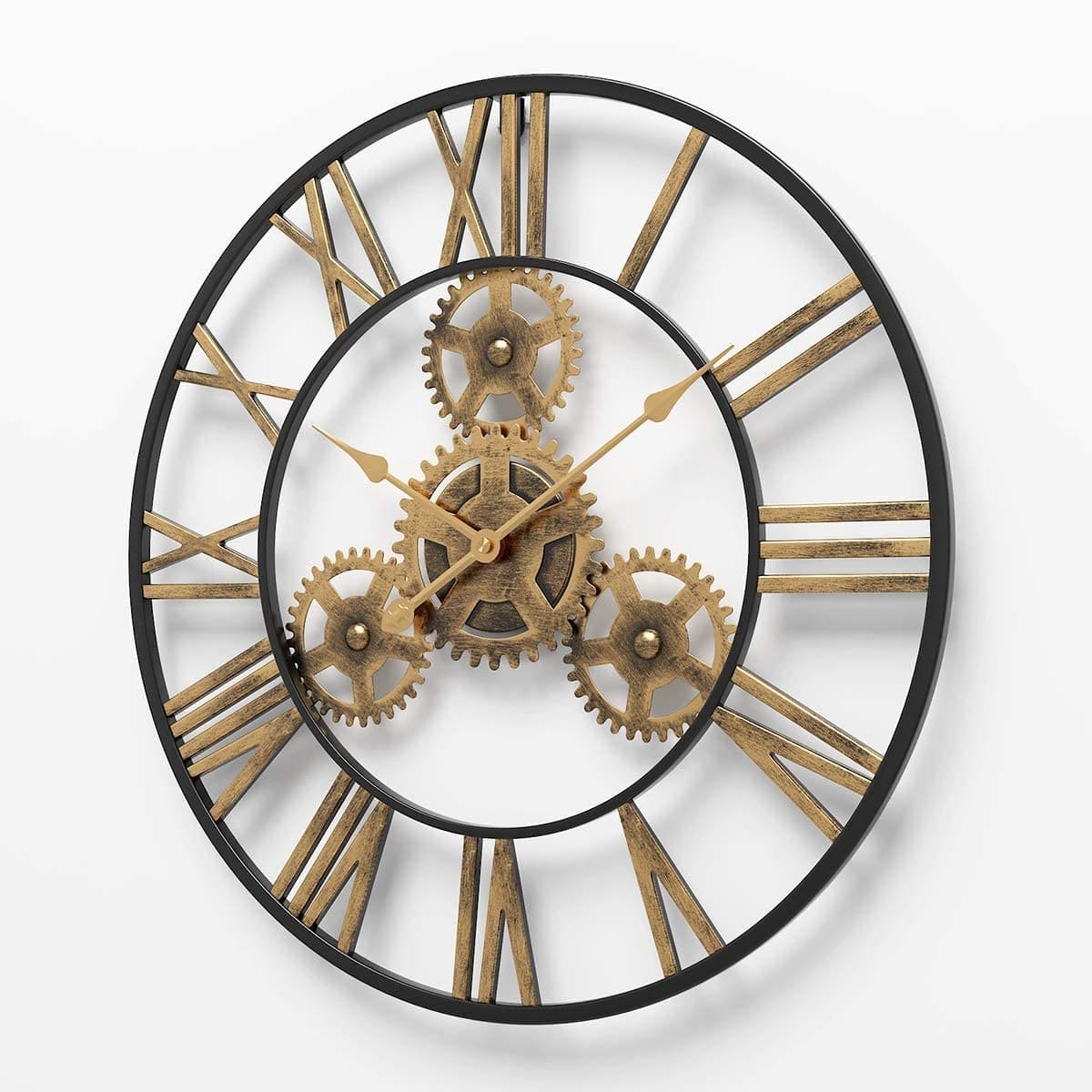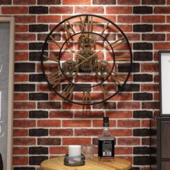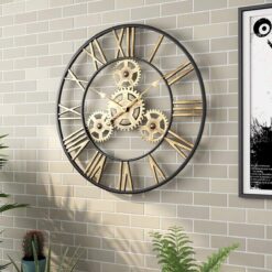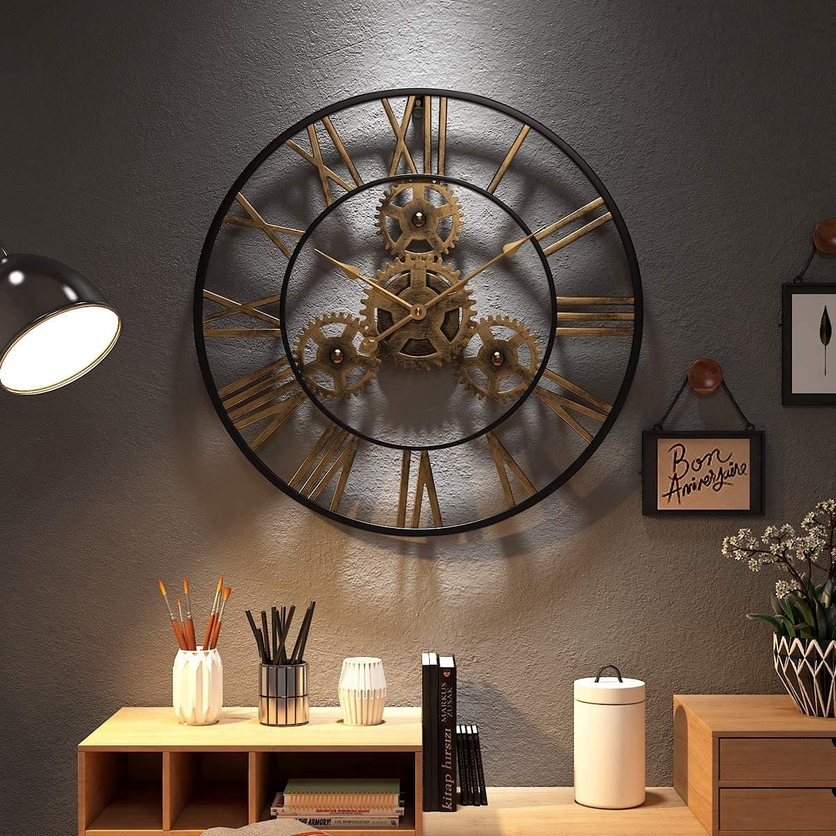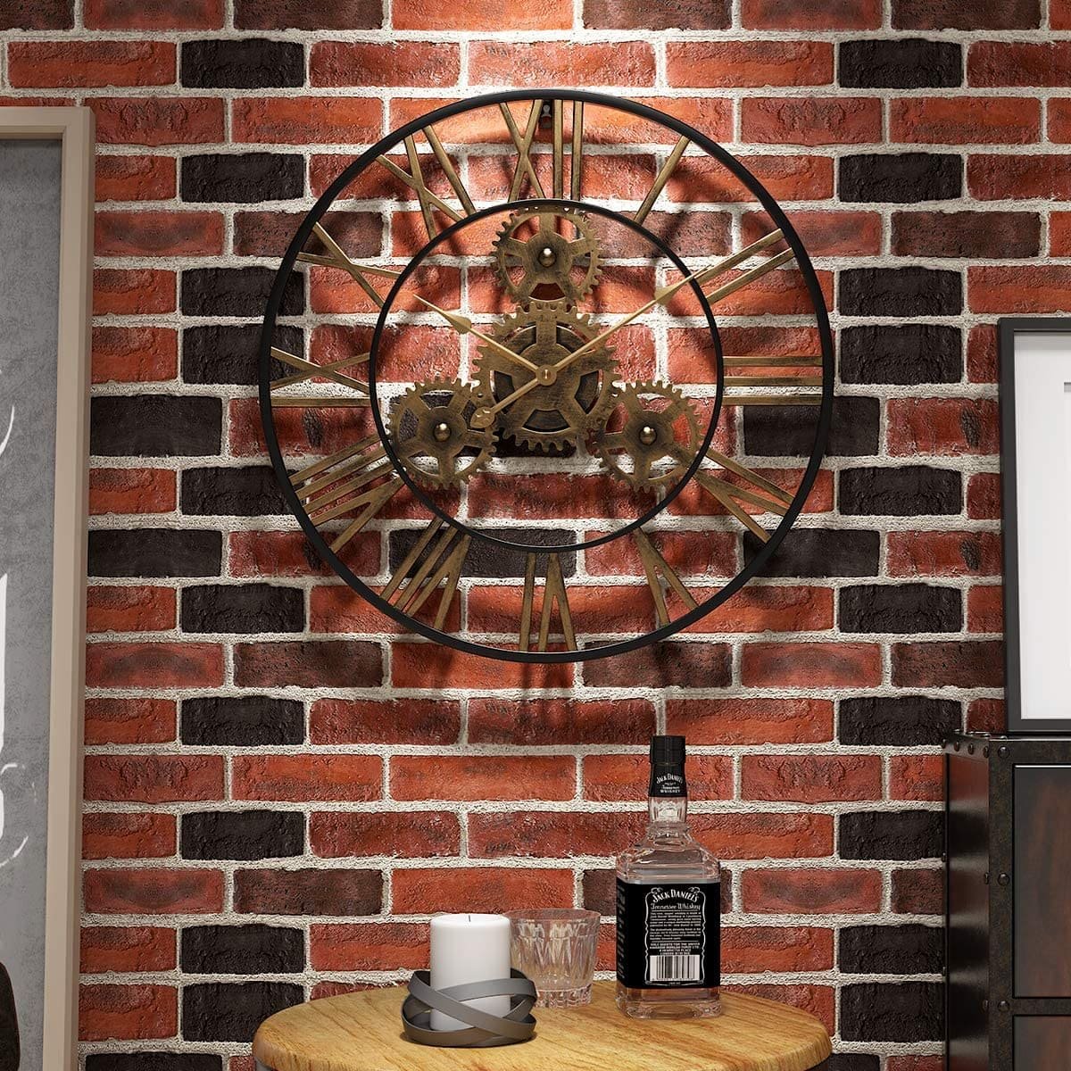 SND Home Decor Large Gear Wall Clock – Oversized 3D Steampunk Roman Numeral Wall Clock – Silent Retro Rustic Country Decorative Wall Clock for Living Room, Dining Room, Home, Farmhouse – Gold Black (40cm)