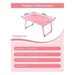 - ❤️【PERFECT SIZE】–The surface size is 60 X 42 cm (larger than other available tables), which can fit laptop up to 17″. There is enough area to use a mouse, keyboard, iPad and some extra accessories. The height is 28 cm, which leaves enough space to stretch your legs in Laptop Bed Table.