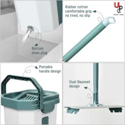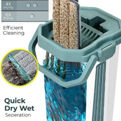 UPGRADE 2-IN-1 DRY&WET HANDS FREE SQUEEZE, Pureatic mop bucket adopt advanced self-squeeze technology, provides hands-free washing and keep your hands from dirt. With convenient 2 groove for wet and dry, just only take several seconds wash the mop head in wet side for deep cleaning, strong dehydration for dust removing in dry side, make clean easily.