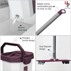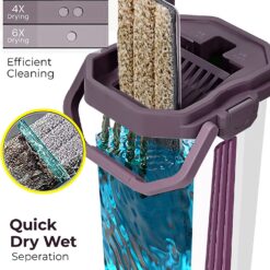 UPGRADE 2-IN-1 DRY&WET HANDS FREE SQUEEZE, Pureatic mop bucket adopt advanced self-squeeze technology, provides hands-free washing and keep your hands from dirt. With convenient 2 groove for wet and dry, just only take several seconds wash the mop head in wet side for deep cleaning, strong dehydration for dust removing in dry side, make clean easily.