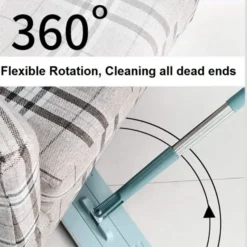 U.P.C. Upgraded Hands-Free Squeeze Microfiber Flat Spin Mop System 360° Flexible Head (38X12.5 cm) with (2+2Free) Super-absorbent Microfiber Pads, 59.8” Extended Stainless Steel Handle – Green