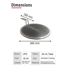 Be the first to review “UPC Chef’s Choice Smart Cookware Stainless Steel SUS 304 Non-Stick Diamond Coating 7 Layer Energy Saving Tawa for Dosa/ Uttapam/ Pratha/ Chapati (Silver – 26cm | 30cm Tawa)” Cancel reply