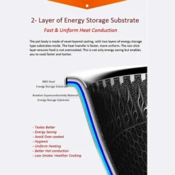 - 🍳 Energy Saving and high heat Conduction: It has 2 layers of energy storage substrates that hold the heat for a longer period of time. It provides uniform heating to the food, enables food to be cooked faster and even, and most importantly it avoids food from being burnt / over cooked.